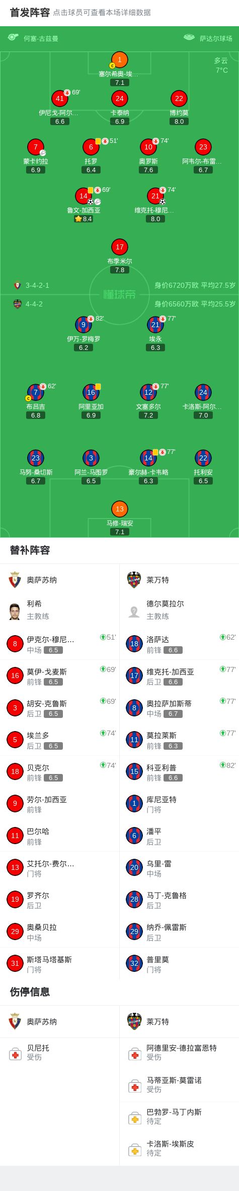第13分钟,奥萨苏纳球员鲁文-加西亚助攻维克托-穆尼奥斯打入一球。